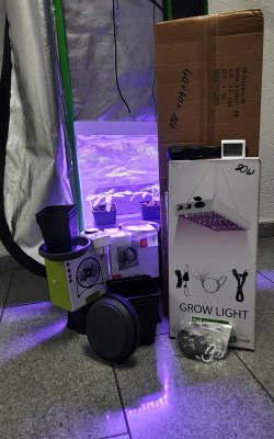 Mit dieser Growbox und 80 Watt LED Grow-Lampe könnte ihr ganz effizient und energiesparsam die ersten 4/5 Wochen eure Samen/Setzlinge anziehen.